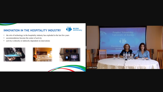 天游ty8检测中心官方登录特聘教授王明卓博士、青年卓越人才刘晶瑜博士,俄罗斯人民友谊大学酒店商务与旅游学院酒店商务和旅游系主任Olga Zeveke博士和SandaChebotaru博士分别做了题为《Food Waste Behaviour in the Hospitality Sector》《Service Robots: Post-pandemic coping strategies》《Trends of the Future and Startup in Tourism》《Innovation in the Hospitality Industry》的精彩报告。