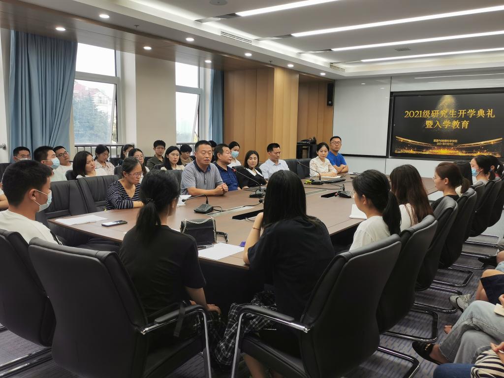 学院党委书记刘善东首先代表学院全体老师对2021级研究生表示热烈欢迎,鼓励新生“拿出考硕的气势”,继续铆足干劲钻研学术研究。随后,他强调,今年是庆祝中国共产党成立100周年,也是向第二个百年奋斗目标进军的开局之年,希望研究生党员发挥模范带头作用,明大德、立大志、成大才、担大任,努力成为堪当民族复兴重任的时代新人。最后,着重强调了安全问题,祝愿21级新生度过健康充实的研究生阶段学习生活。