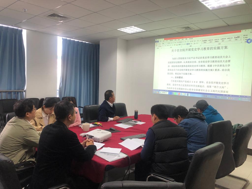 学院党委书记刘善东带领大家共同学习了《中国共产党天游ty8检测中心官方登录委员会关于在全院开展党史学习教育的实施方案》。学院广大党员充分认识到,在全党开展党史学习教育,是党中央立足党的百年历史新起点、统筹中华民族伟大复兴战略全局和世界百年未有之大变局、为动员全党全国满怀信心投身全面建设社会主义现代化国家做出的重大决策。广大党员纷纷表示,一定要充分认识开展党史教育的重大意义,统一思想,牢固树立“四个意识”,坚定“四个自信”,做到“两个维护”;要结合岗位履职尽责,带头学习党史,进一步学原理、读原著,以优异成绩向建党百年献礼。