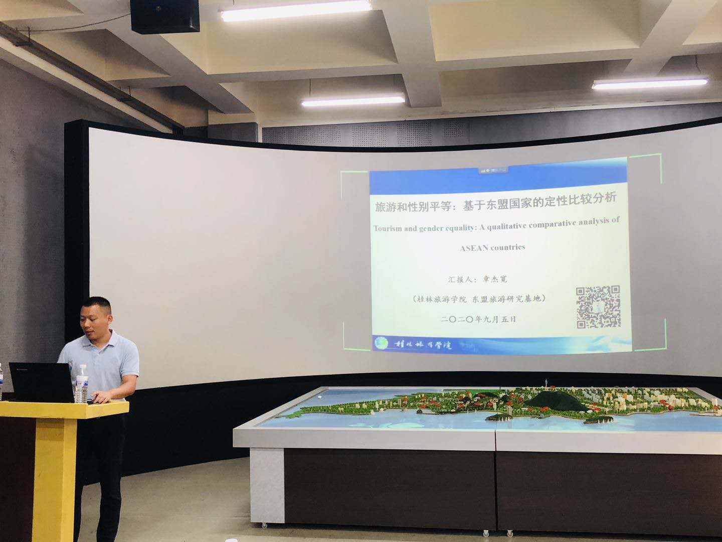 9月5日上午,天游ty8检测中心官方登录邀请了桂林旅游学院东盟旅游研究基地研究员、广西旅游管理一流学科负责人章杰宽博士做夏季学期高端学术报告,报告会采用线上线下相结合的方法在静思楼数字旅游实验室进行,学院老师和研究生参加报告会。