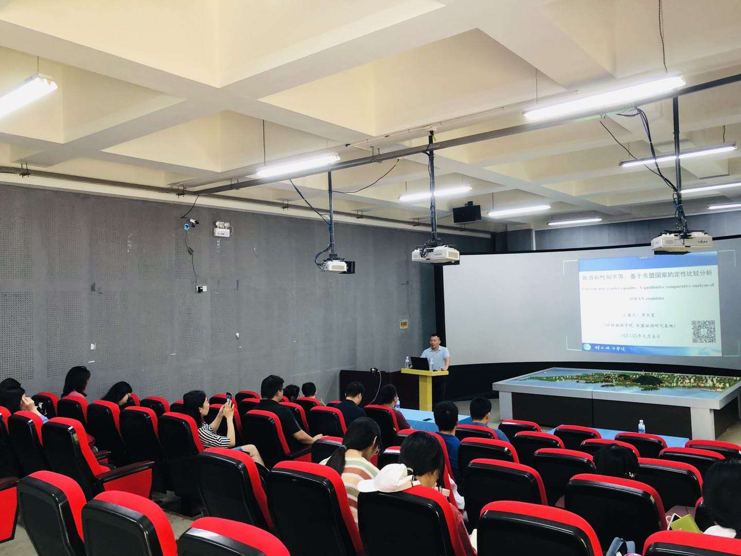 9月5日下午,章杰宽博士以“亚洲国家的旅游和性别平等:一个经济学视角”为题,为我们介绍了他将要发表在国际权威学术期刊 《Annals of Tourism Research》上的一篇文章,会议主题即该文章的中文题目。章杰宽博士通过对文章部分内容的介绍,分享了他的英文论文写作方法和经验,并且重点指出该论文的亮点在于文末的深入讨论部分。报告结束后,章杰宽博士耐心的解答了参会师生们提出的问题,与各位老师进行简短的讨论,并在最后给了研究生们很大的鼓励。