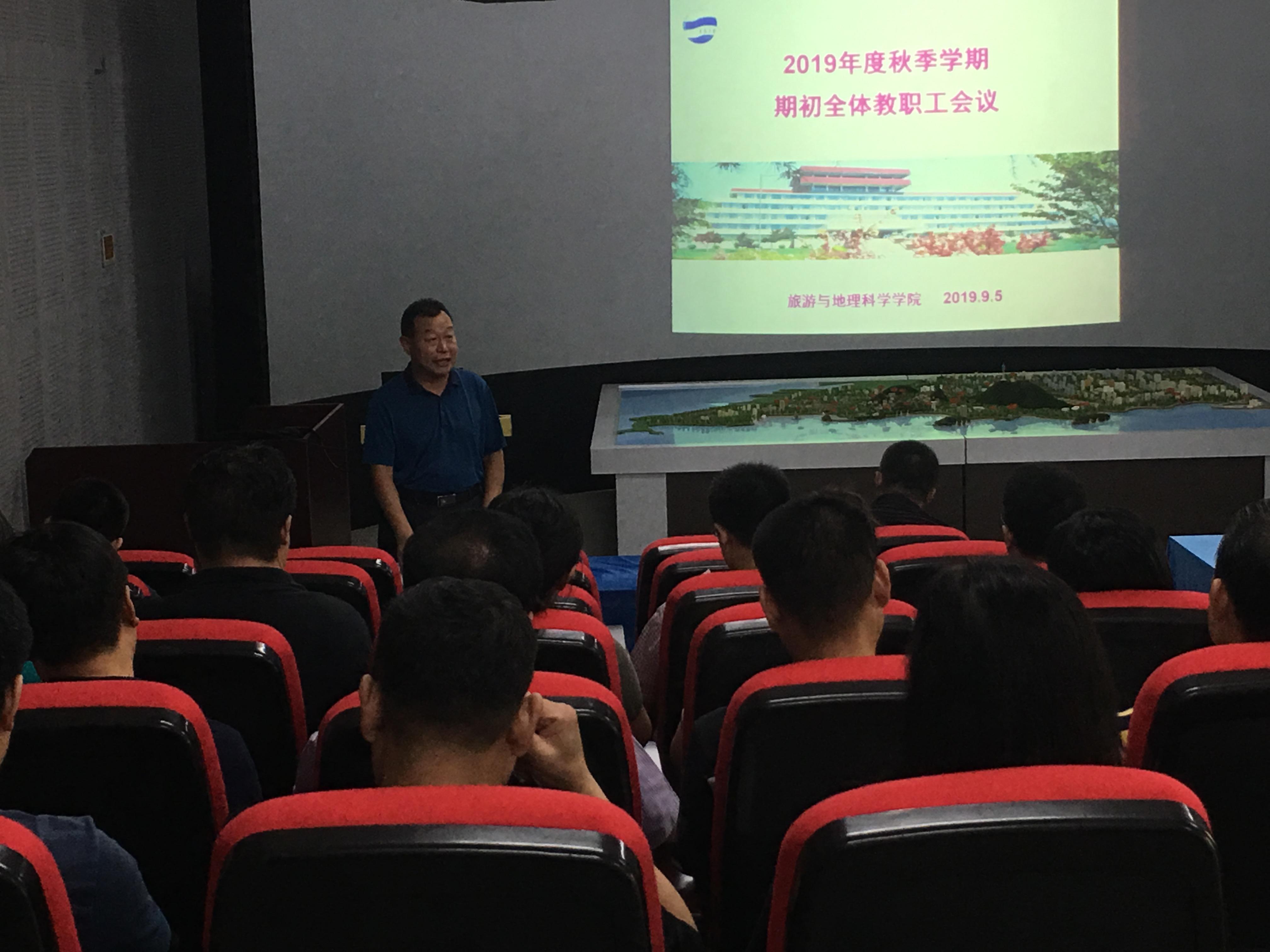 9月5日下午,天游ty8检测中心官方登录在数字旅游实验室召开全院教职工大会,传达学习学校党委全委(扩大)会议暨2019年暑期中层干部学习研讨班的会议精神,总结2019年上半年学院工作,部署下半年任务安排。学院全体教职工参加会议。