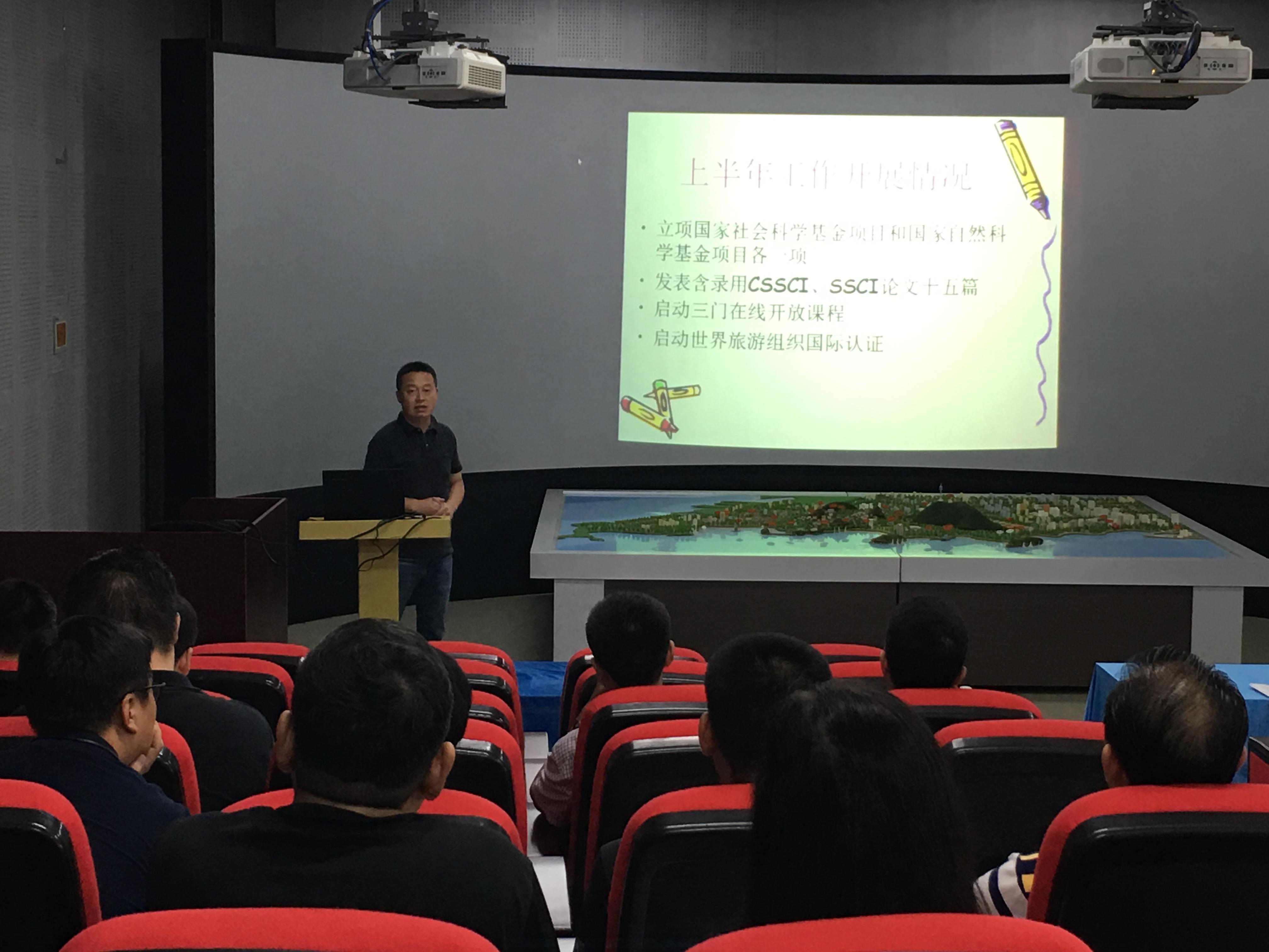 肖建红院长对上半年学院工作开展情况进行了总结梳理,并对下半年学院拟推进的工作进一步部署。下半年学院将进一步开展国家级项目选题和申请书撰写指导工作;继续鼓励推进学术论文撰写发表工作;鼓励教师增加在线开放课程门数;继续推进世界旅游组织国际认证争取年底完成主体工作;启动地理学硕士点培育工作;启动省级教学成果奖培育工作;积极与省内文旅政府部门对接交流;继续加大青年优秀人才的引进和院内青年优秀人才的培养力度。