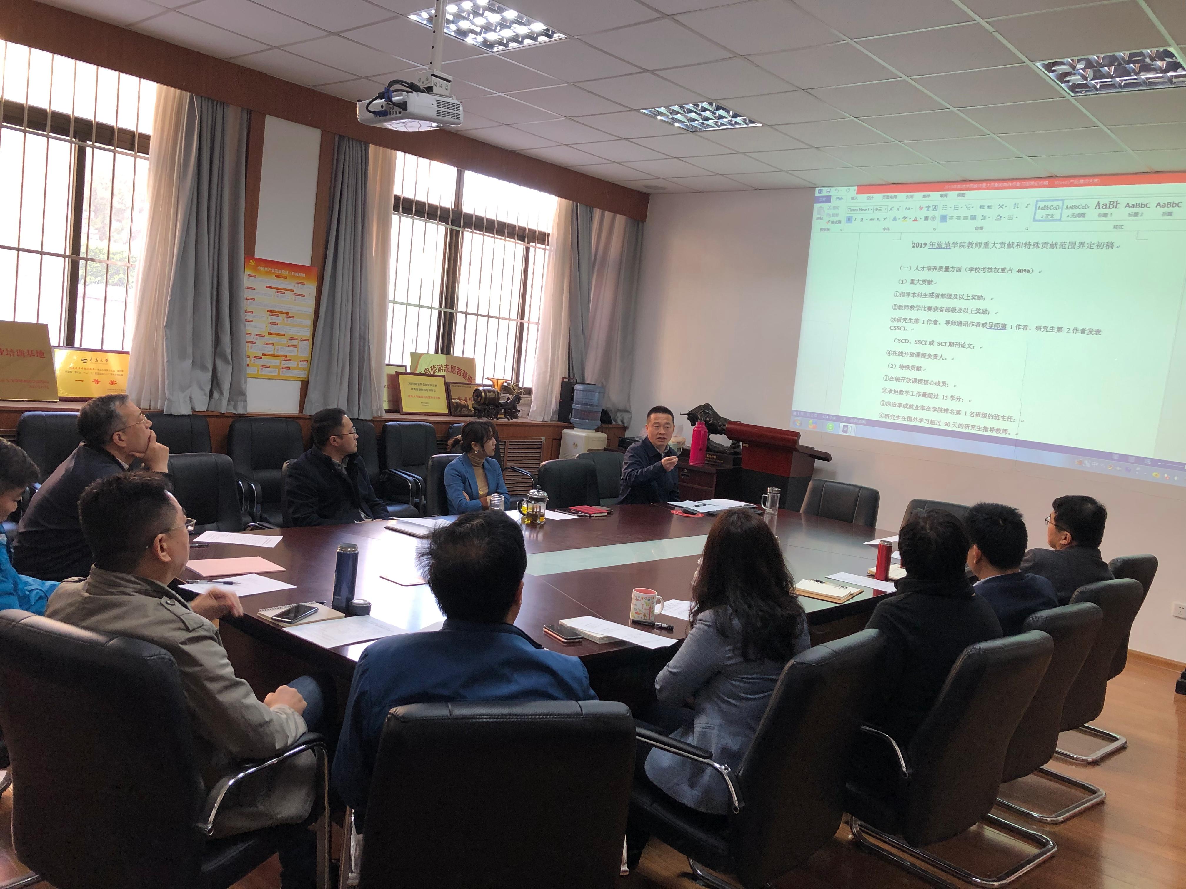 学院院长肖建红传达了学校六届一次“双代会”会议精神,学习了夏东伟校长《凝心聚力 创先争先 努力开创高水平大学建设新局面》的工作报告,并根据学校与学院签订的2019年度工作任务责任书,对学院的人才培养质量、师资建设、科学研究、学科建设个方面剖析了学院在发展过程中存在的问题以及解决的具体措施。与会教师对2019年学院教师重大贡献和特殊贡献的范围界定和今后的教师科研任务门槛条件进行了讨论,旨在强化责任,明确重点,确保年度和今后工作任务的落实与实施。