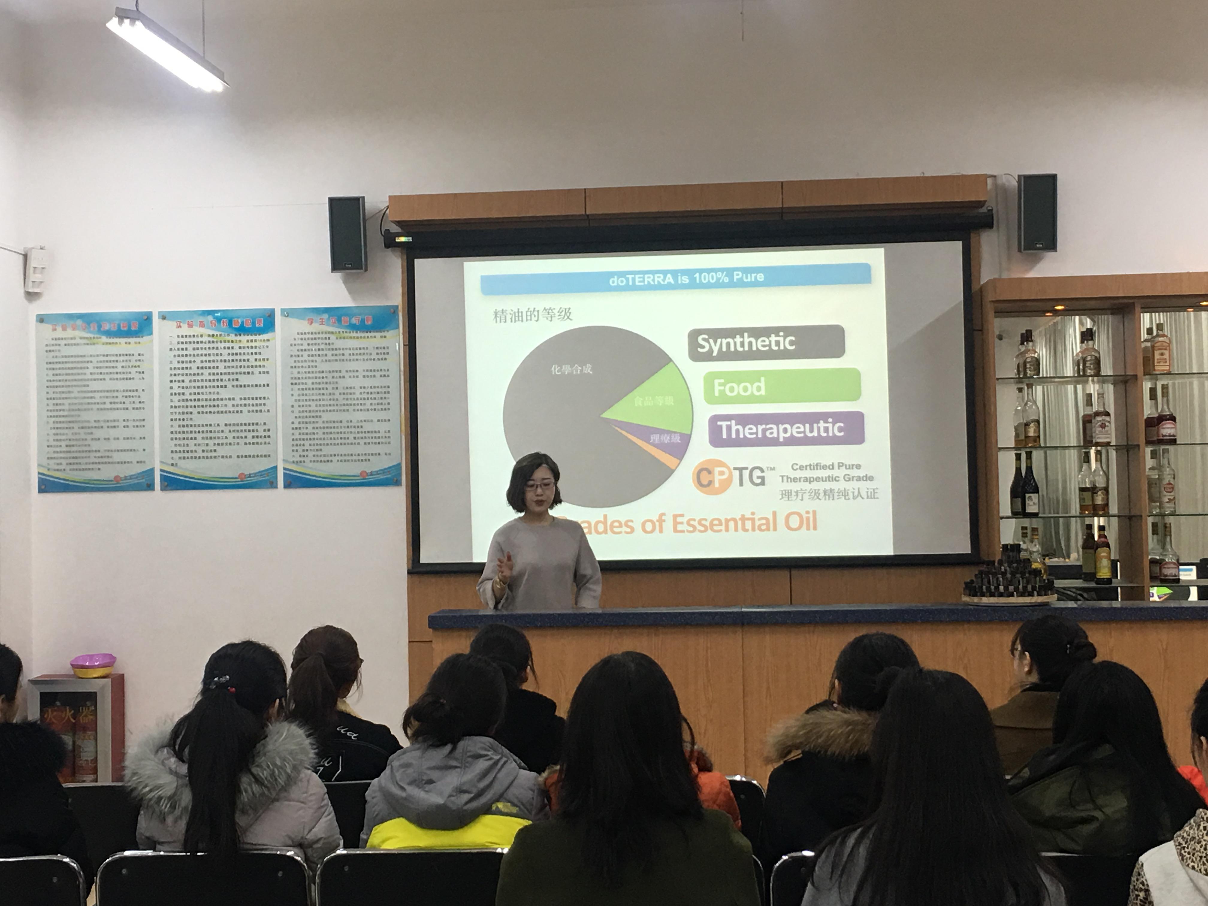 阳春三月,万物更新。3月9日下午,为庆祝“三八”国际妇女节,丰富女职工业余文化生活,天游ty8检测中心官方登录在院酒店管理实验室组织开展了题为《植物芳香课堂》精油知识讲座。讲座开始刘善东书记和耿庆汇院长代表学院为全体女老师送上了节日的祝福,接下来由中国高级精油疗法康复理疗师文莉老师从植物疗愈功效、精油品质辨别、精油功效等方面进行了详细讲解,并与大家现场互动,女老师们在精油温馨芬芳的氛围里收获了精油与人体健康的相关知识。随后,在文老师的指导带领下,老师们学习了手工精油皂的制作流程和技巧,并根据自身体质,动手制作了一块属于自己的专属精油皂,大家在欢声笑语中体验了亲自创作的成就感。