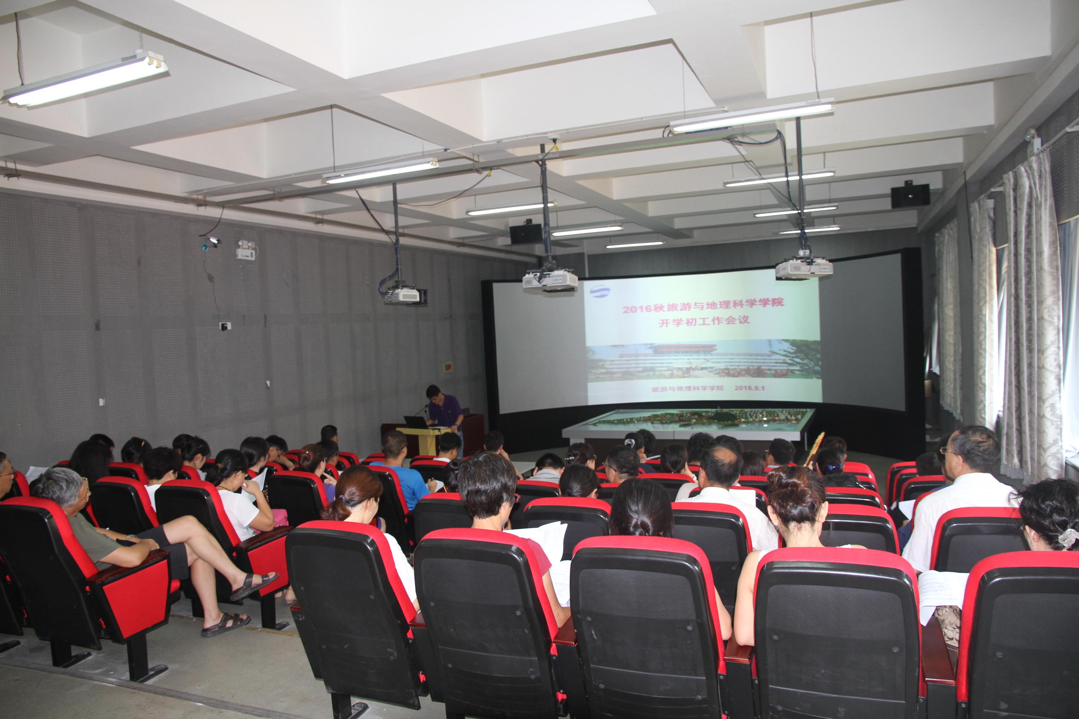 9月1日下午,天游ty8检测中心官方登录全体教职工在学院数字旅游实验室召开新学期工作部署会,会议由学院党委书记刘善东主持。会议传达了学校暑期工作研讨会精神,要求全体教职工深刻领会,制定新学期发展计划。学院各分管领导就本科教学工作、研究生培养工作、科研工作、学生工作进行了部署。全体教师对学院的岗位津贴发放与绩效奖励分配办法进行了讨论。