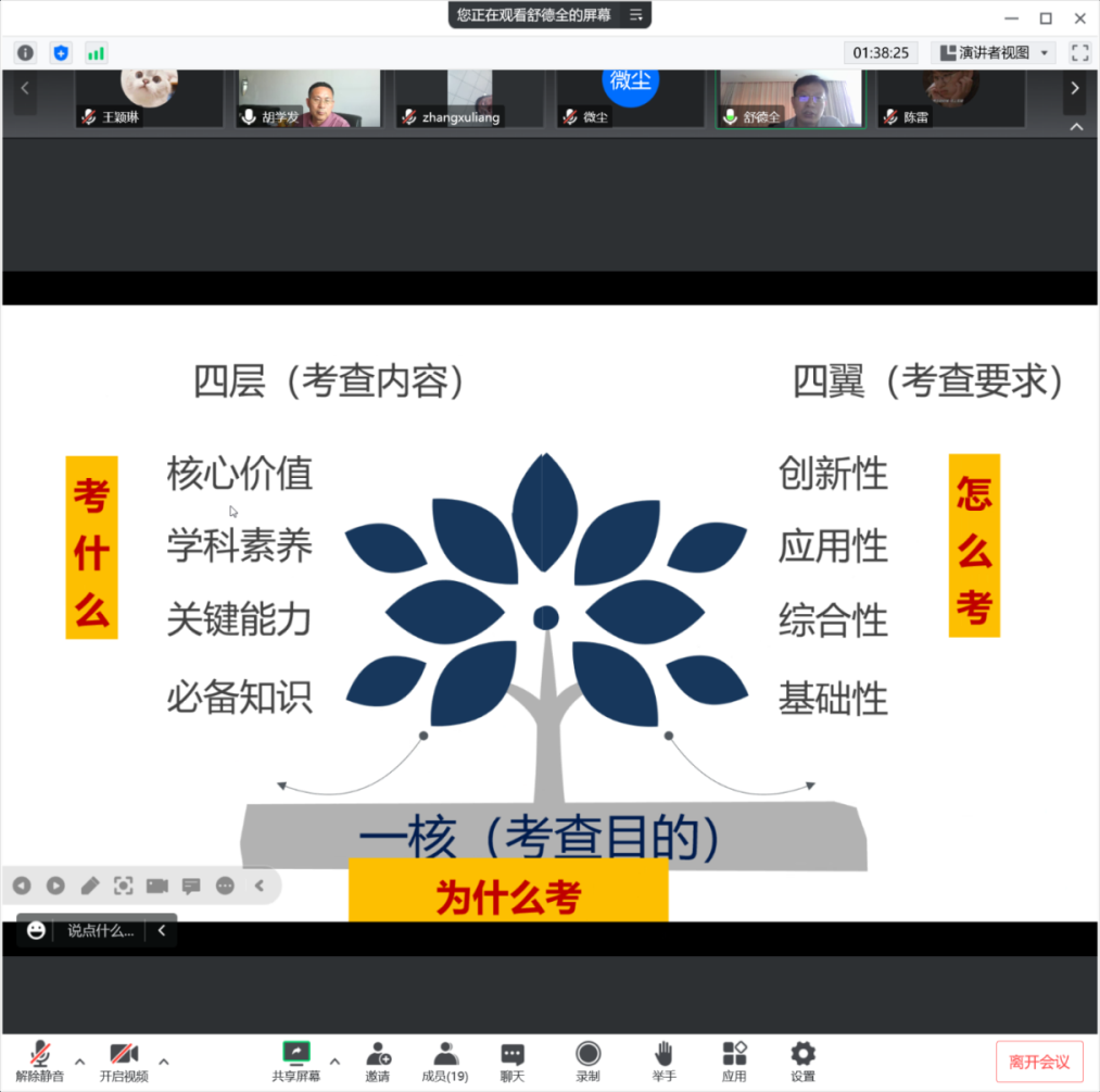 舒德全老师从事高中地理教研工作多年,对应对高考的高中地理教学了解颇深,舒老师根据《高考评价体系》为我们进行详细地讲解和分析,从国务院颁发的高考纲领性文件和高考改革方面切入,强调新高考改革后高考重点考查学生独立思考和运用所学知识分析和解决问题的能力。