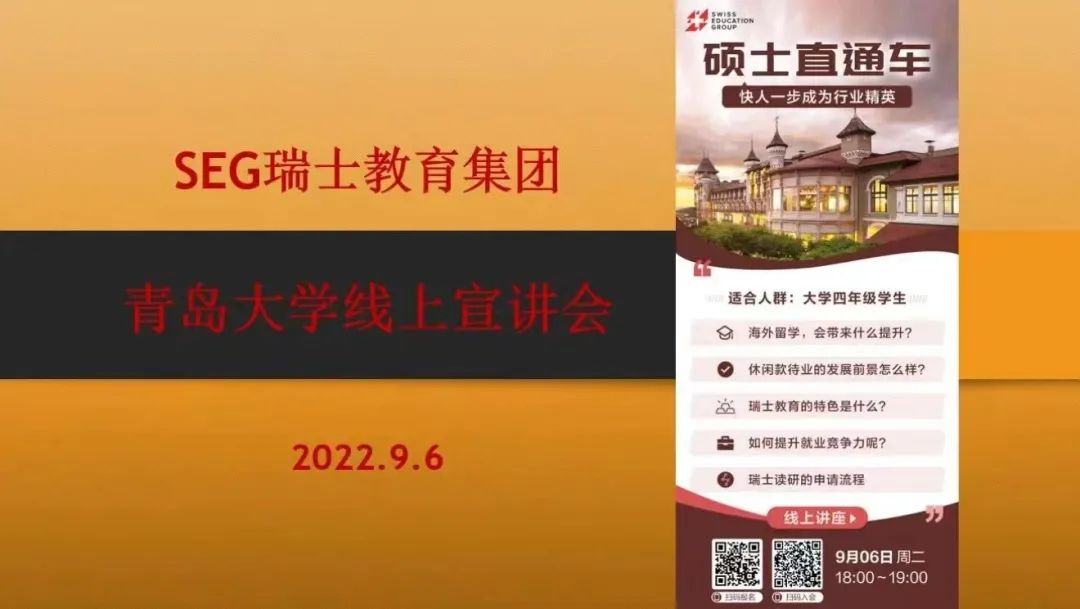 2022年9月6日,天游ty8检测中心官方登录邀请SEG瑞士教育集团为2019级学子作出国留学宣讲。天游ty8检测中心官方登录院长肖建红、副院长耿庆汇与同出席。