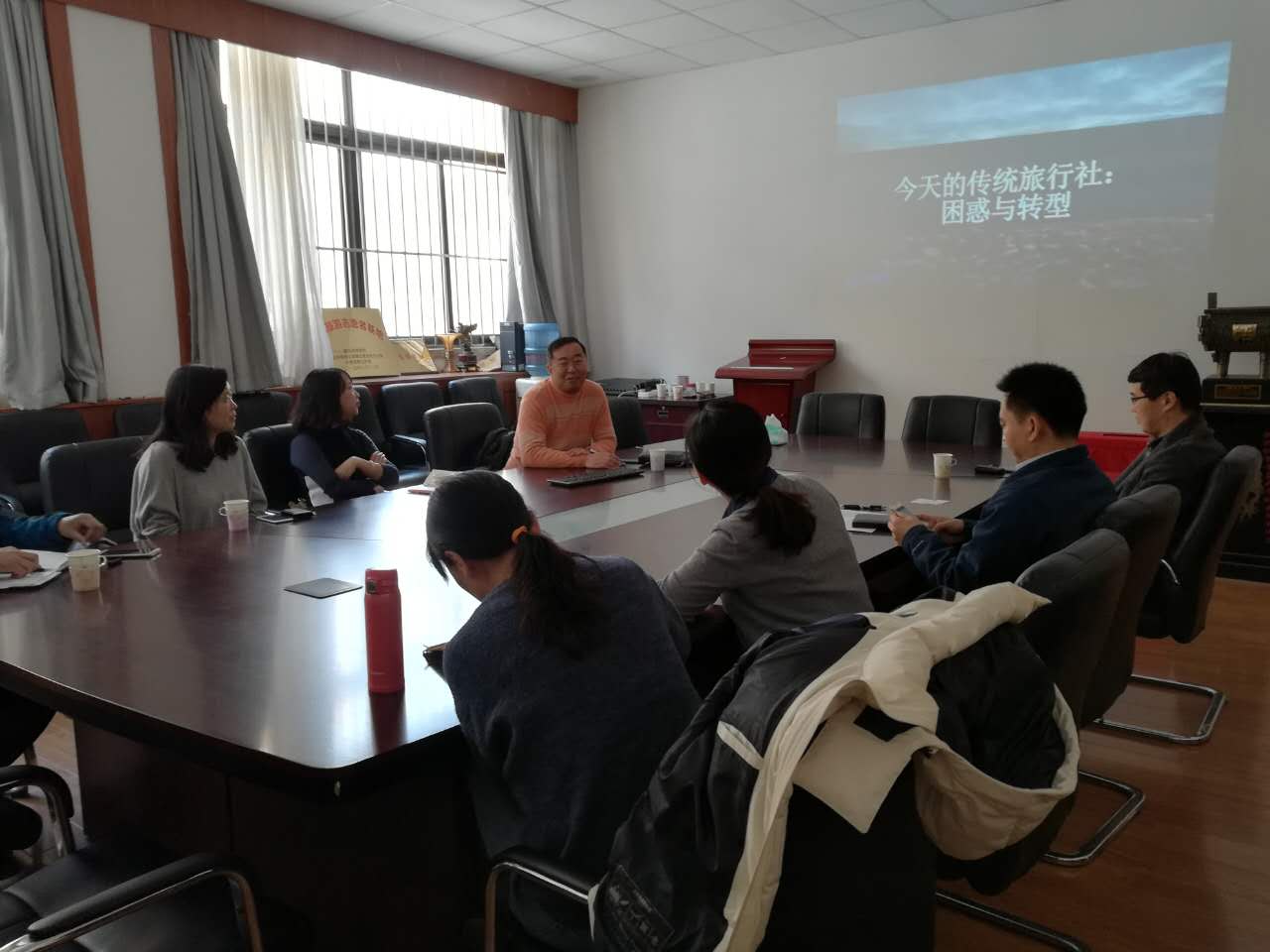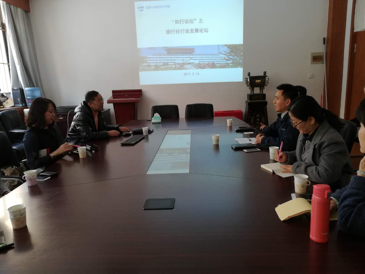 2017年3月16日下午,山东港中旅国际会议展览有限公司执行总经理徐丽丽女士、山东万达国际旅行社有限公司副总经理王晓光和中国国旅(青岛)国际旅行社有限公司入境中心副总经理丁宁女士应邀到天游ty8检测中心官方登录进行学术交流,交流会由天游ty8检测中心官方登录张言庆副院长主持,天游ty8检测中心官方登录师生参加了此次交流会。