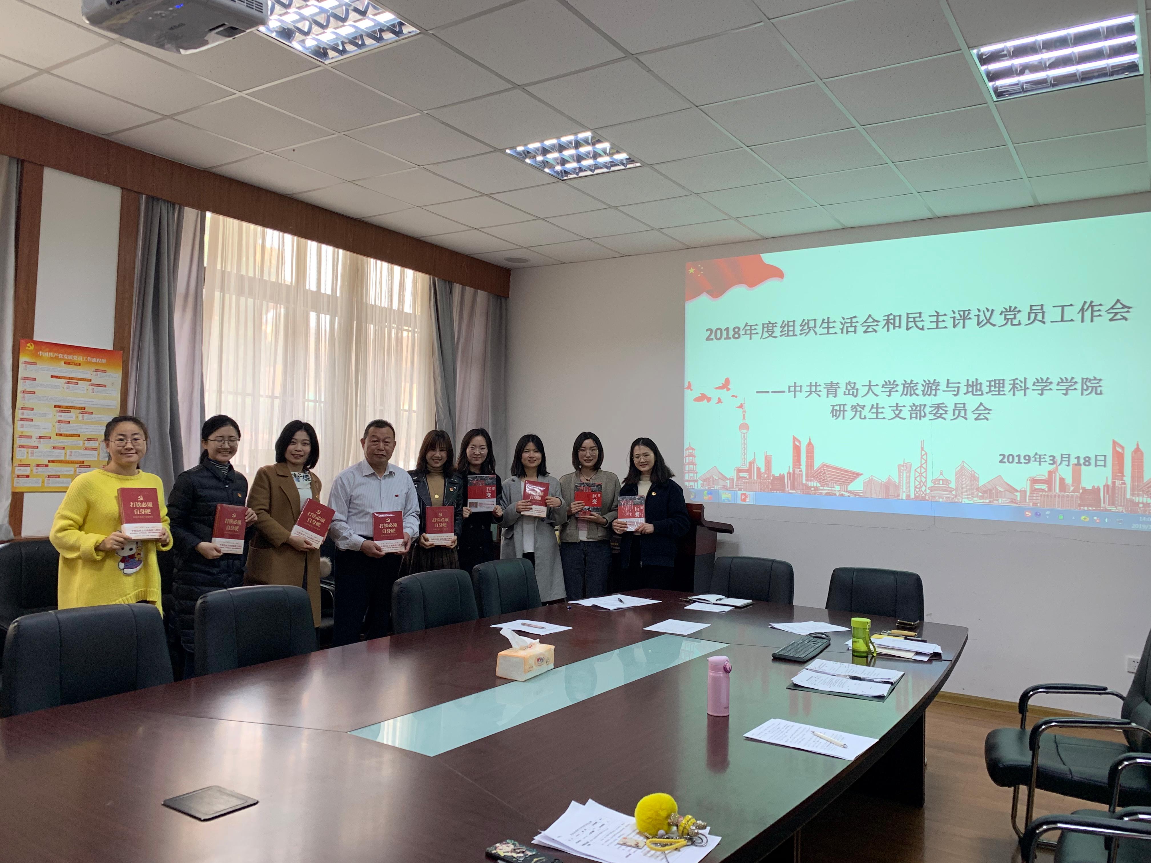 首先,于苗同志代表党支部委员会作述职报告,总结了2018年度研究生党支部开展的工作,同时深刻剖析了支部工作存在的问题,并提出改进措施。与会党员也就本支部的工作、作风等方面表达了自己观点,并进行了民主测评。随后,各参会党员依次进行2018年度个人自评和互评。经过党员评议环节,三名党员评议结果为优秀,其他党员也均合格。接着,院党委书记刘善东向每位党员赠予学习书籍:《巨变:改革开放40年中国记忆》或《打铁必须自身硬:改革开放四十年党建史》。最后,刘书记对此次会议进行了总结,并向参会党员提出了新要求和新希望。