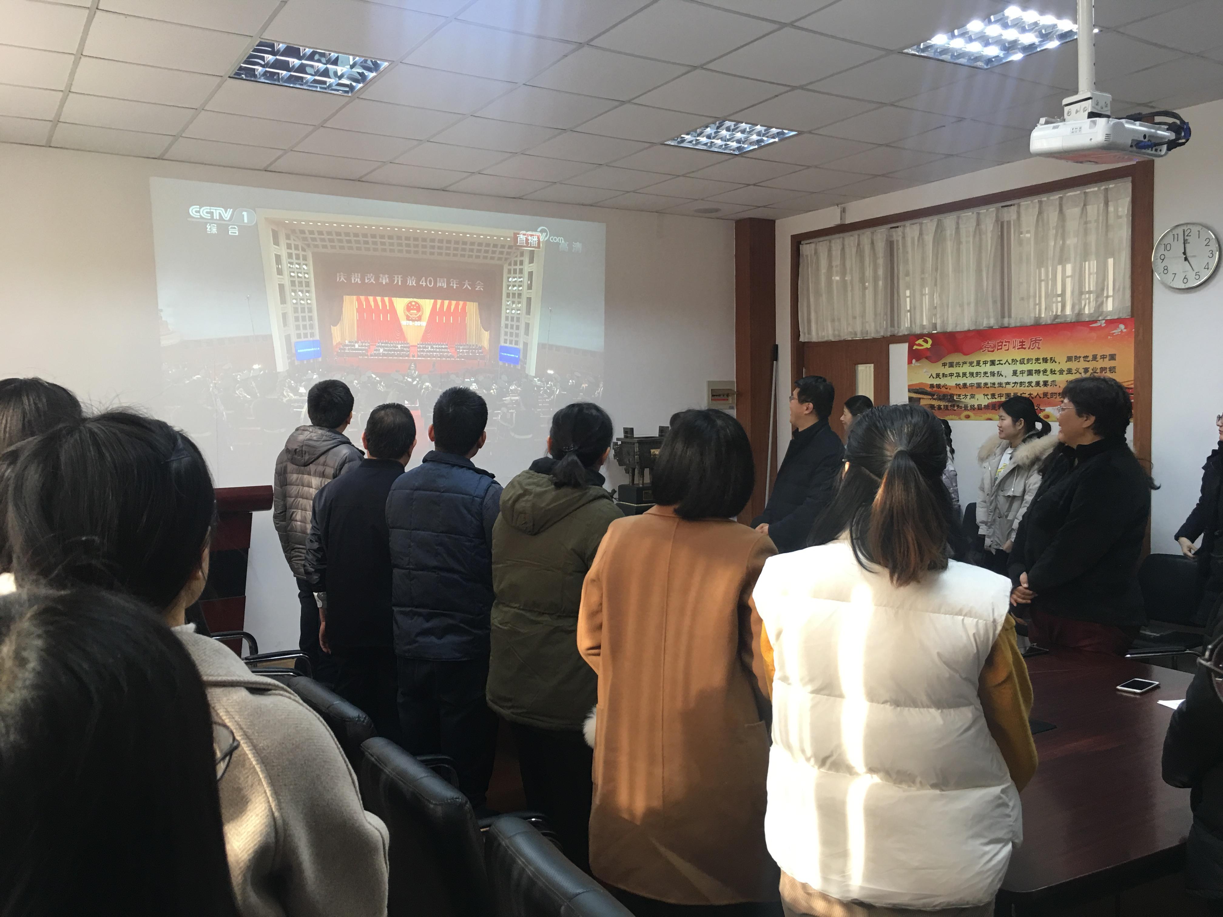2018年12月18日上午,天游ty8检测中心官方登录采取集中组织、网站直播、手机端视频等多种形式,组织全院全体老师、同学收听收看大会直播盛况。学院党委中心组成员、部分教师代表、学生代表在学院会议室集中观看。
