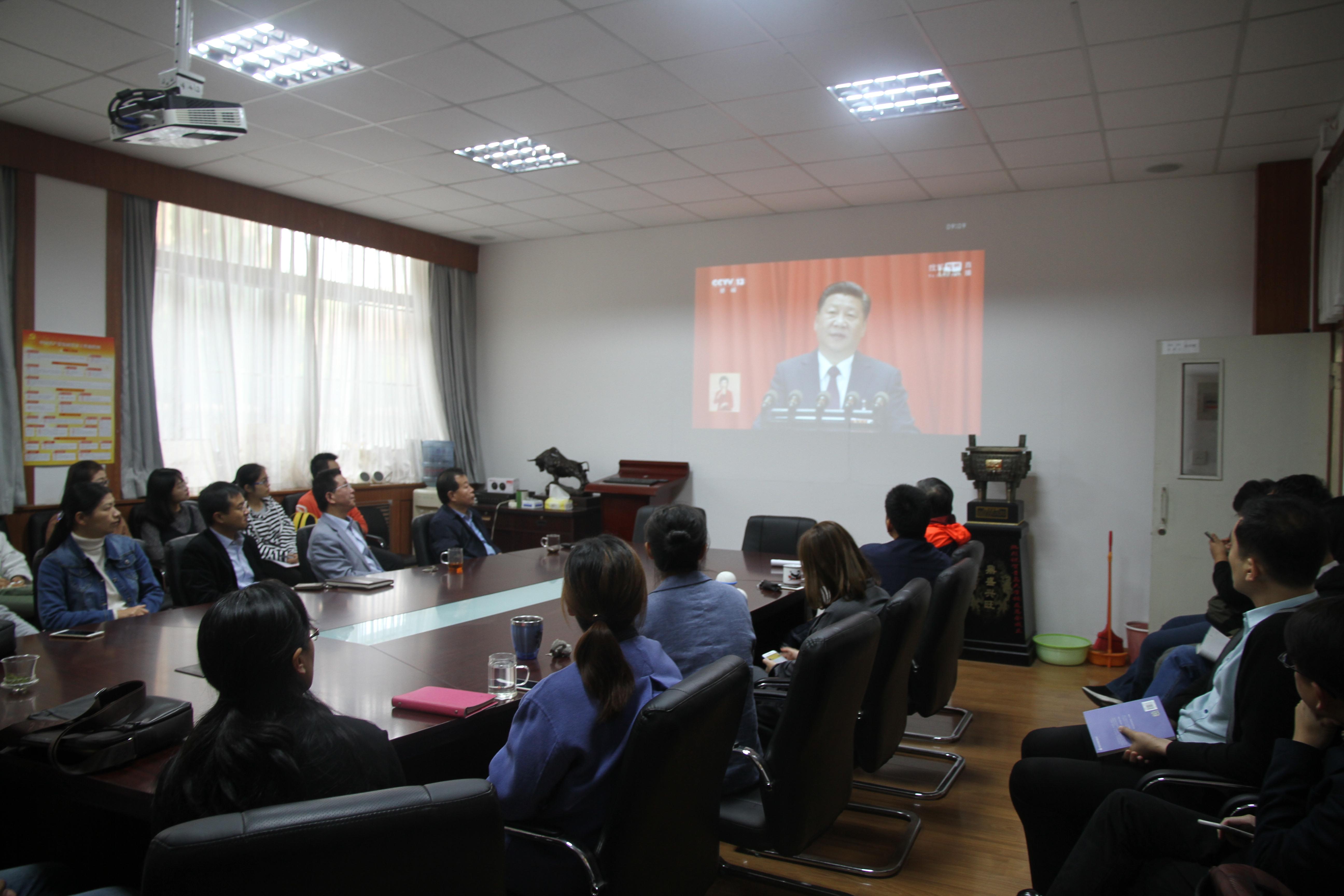 2017年10月18日上午9时,举世瞩目的中国共产党第十九次全国代表大会在北京人民大会堂隆重开幕,天游ty8检测中心官方登录党委组织师生党员、入党积极分子在学院会议室收看开幕式盛况,认真聆听习近平总书记代表十八届中央委员会所作的工作报告。