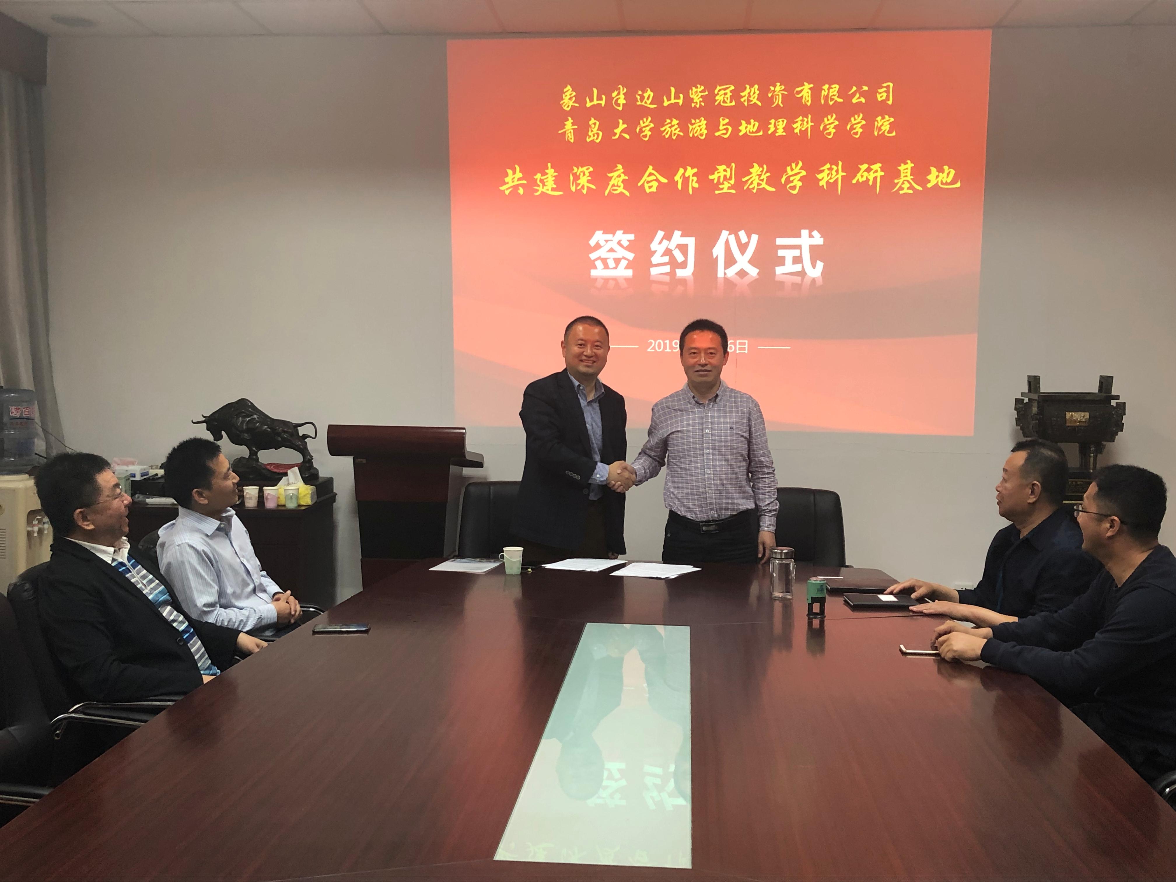5月16日下午,天游ty8检测中心官方登录与象山半边山紫冠投资有限公司共建深度合作型教学科研基地签约仪式在浮山校区东院睿思楼122室举行。象山半边山紫冠投资有限公司总经理胡宏涛、天游ty8检测中心官方登录院长肖建红作为双方代表进行了签约。