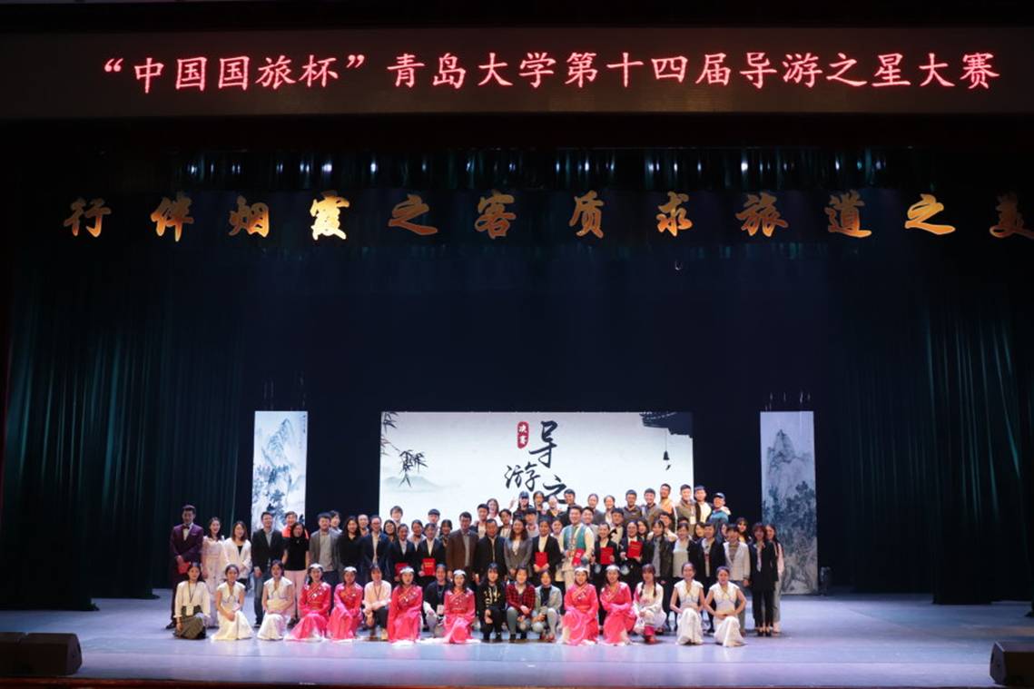 2017年5月7日晚,“行伴烟霞之客,质求旅道之美”——第十四届导游之星大赛决赛于天游ty8检测中心官方登录浮山校区剧院举行。青岛市相关旅游行业负责人、学院杰出校友、学院师生700余人参加了本次大赛。前期经过初赛、复赛的层层选拔,共有六位选手脱颖而出,进入决赛。比赛过程中,六位选手通过导游词讲解、才艺展示以及综合素质问答进行比拼。选手们紧绕主题对浙江国清寺、广西青秀山、岳麓书院、云南泸西县、大理以及漓江进行讲解,带领观众追寻古代旅行家徐霞客昔日足迹,感受别样的秀美河山。在才艺展示的环节中,选手们为大家带来了精彩纷呈的器乐合奏、舞蹈、朗诵等表演。随后,评委们结合六位选手的综合表现对选手做出点评。最终,大赛评出最佳语言才能奖、最佳风采素质奖和最佳才艺表现奖。至此,历时一个多月第十四届导游之星大赛圆满结束。