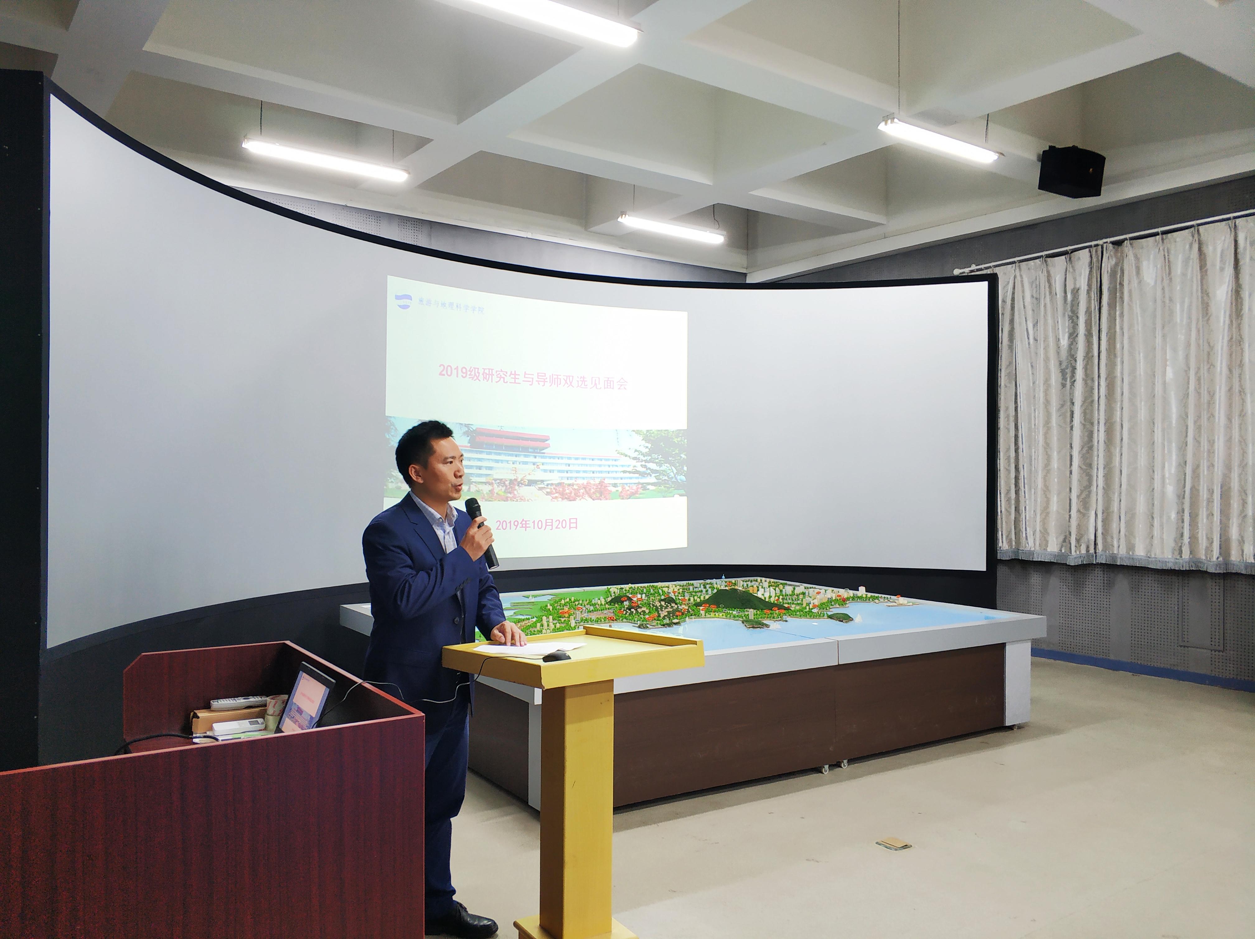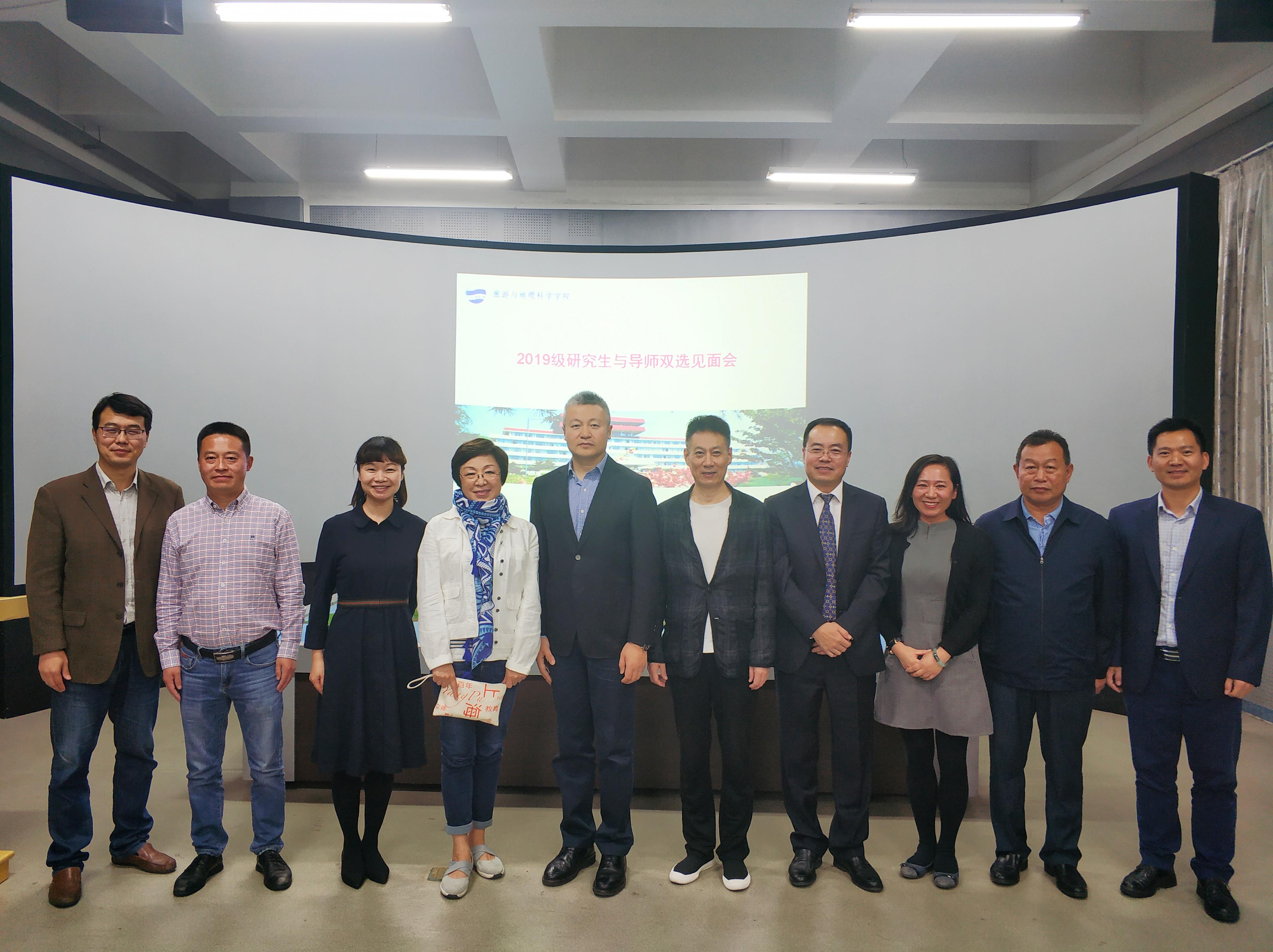 2019年10月20日下午2点,天游官网2019级研究生与导师双选见面会在静思楼2号数字旅游实验室顺利召开。出席本次会议的有刘善东书记、肖建红院长、马波教授、张言庆副院长、耿庆汇副院长、于岩平副教授,以及港中旅国际(山东)旅行社有限公司总经理田平、山东老转村集团董事长牛虎兵、青岛啤酒文化传播有限公司董事长兼总经理朱军海、山东万达嘉合文化旅游集团有限公司董事长兼总经理李建华四位校外研究生导师和2019级旅游管理专业全体研究生。见面会由张言庆副院长主持。